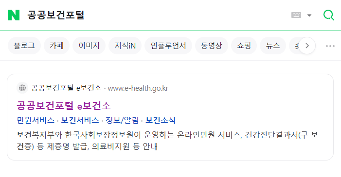 먼저 인터넷 검색창에 공공보건포털을 검색 후 홈페이지에 접속합니다.