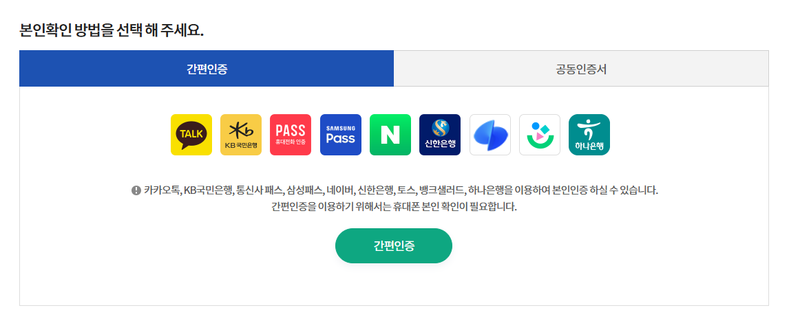 안내사항을 확인 후 동의에 체크한 뒤, 본인 인증 절차를 거칩니다.