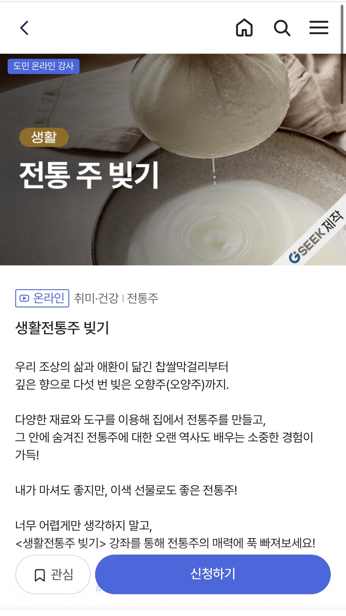 GSEEK은 경기도에서2017년부터 운영하는 온라인 평생학습 포털로, 누구나 쉽게 접근할 수 있습니다. 다양한 분야의 콘텐츠와 강좌를 제공하여, 개인의 역량, 학습 목표에 맞춰 학습할 수 있는 기회를 제공합니다.