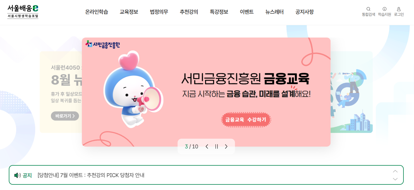 서울배움e는 서울시민을 위한 온라인 학습 대표 플랫폼으로, 분야를 불문하고 누구나 자유롭게 수강할 수 있는 강의가 등록되어 있습니다.
