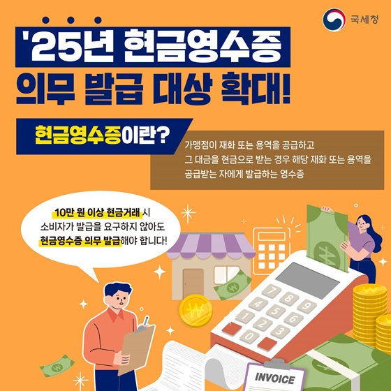 *10만 원 이상 현금 거래를 했다면 소비자가 발급을 요구하지 않아도 현금영수증 의무 발급해야합니다.