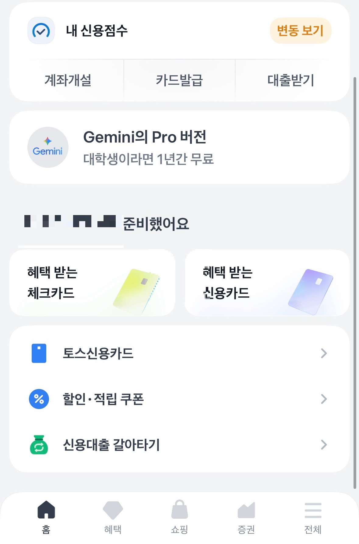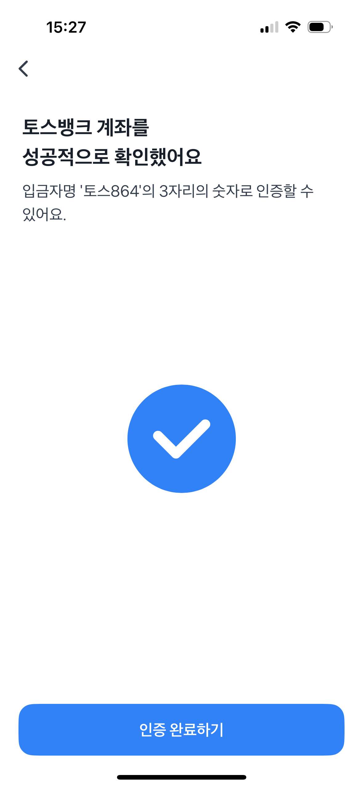 얼굴 인식이 끝났다면 토스 비밀번호+핸드폰 인증번호 누른 후 사용할 카드나 계좌를 연결 후 인증