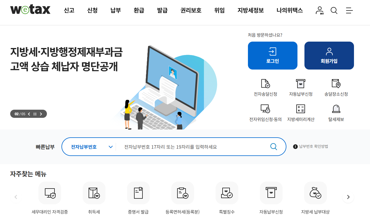 지방세 통합 납부 시스템으로, 재산세 조회와 납부가 모두 가능합니다.