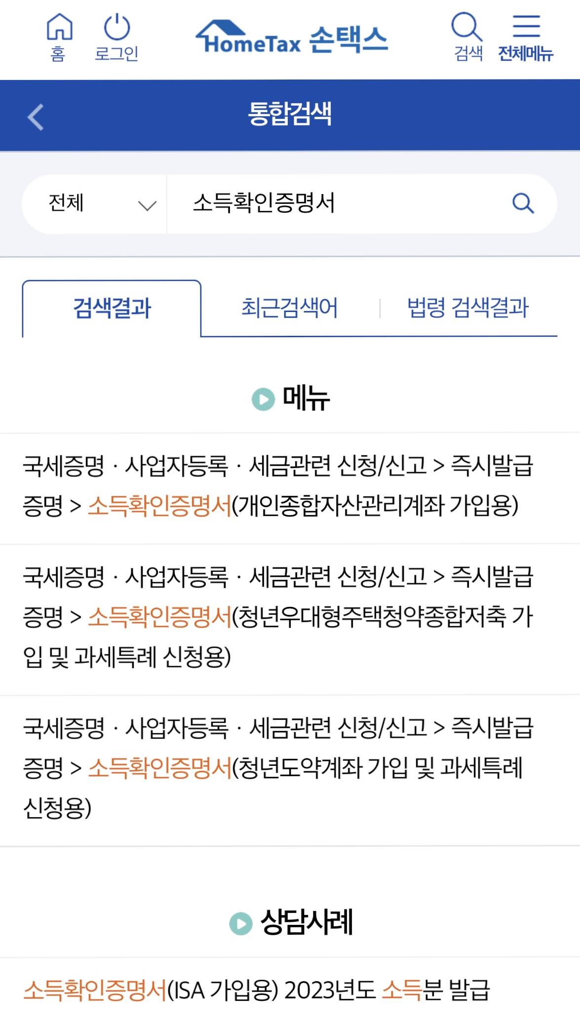 홈택스는 웹사이트와 모바일 앱(손택스)이 있어서 모바일로도 쉽게 증명서를 발급 받을 수 있다는 장점이 있습니다.